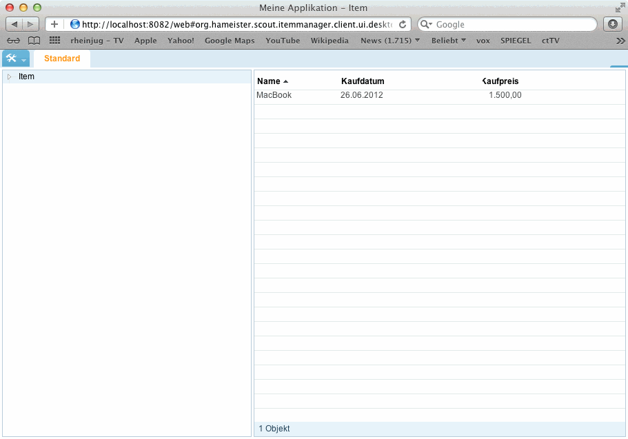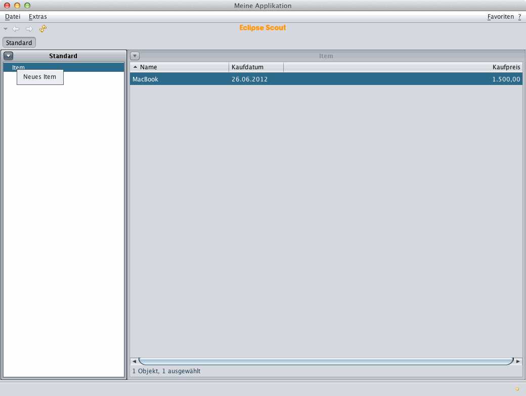 Zum Anlegen eines neuen Item wird ein Menü-Punkt auf der Linken seinen angeboten.
