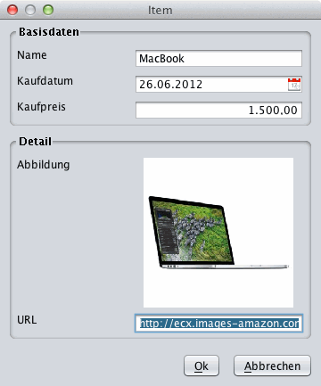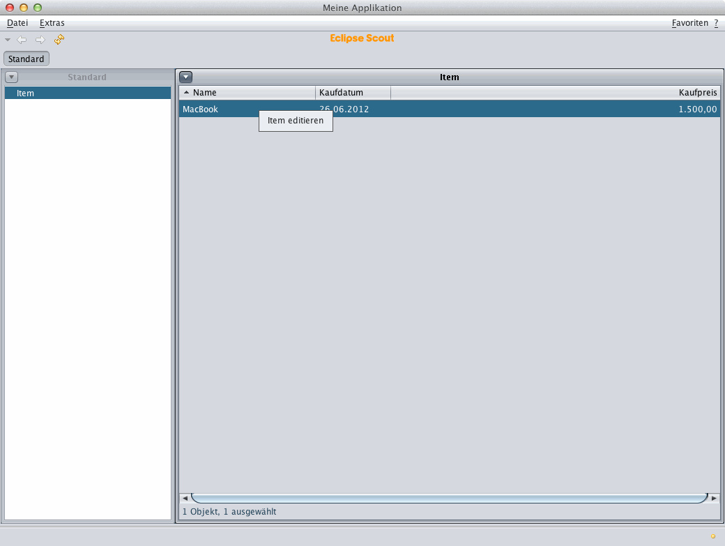 Nach dem Anlegen eines Items wird dieses auf der rechten Seite im Client-Fenster angezeigt und es wird ein Kontextmenü-Eintrag Item editieren angeboten, der das Eingabe-Formular nach einem Klick öffnet.