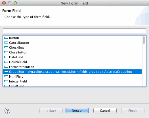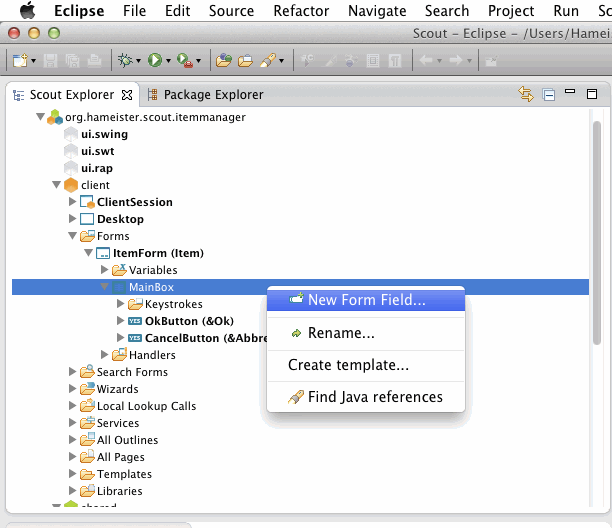 Also selektiert man die MainBox und wählt im Kontextmenü den Eintrag New Form Field... aus: