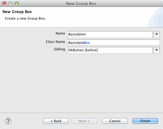 Im nächsten Wizard-Dialog trägt man als Name den Wert Basisdaten ein und gibt eine Übersetzung an. Als Class Name ergibt sich BasisdataBox. Geschlossen wird der Dialog mit Finish.