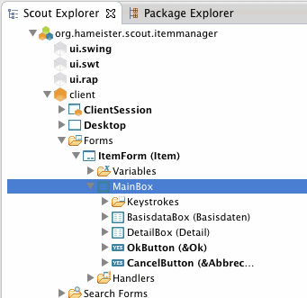 Für die Detailbox geht man analog vor, so dass nach dem Anlegen zwei Boxen unter der MainBox angezeigt werden.