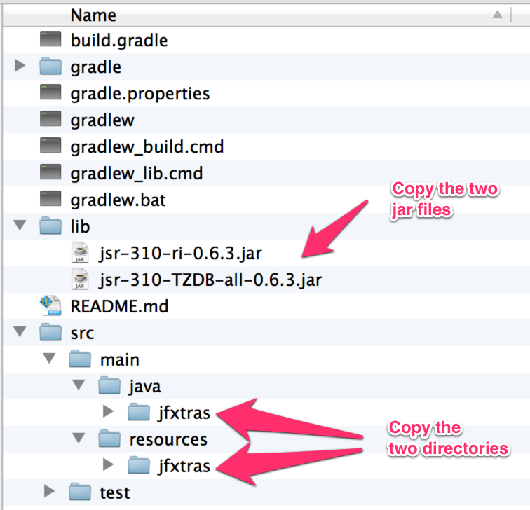 When you extract the zip file you have to call the Gradle build script and wait until the compilation is finished. The result is a jar file with all necessary binaries you need. This jar file must be included in you project so you can use the components of the JFXtras library.