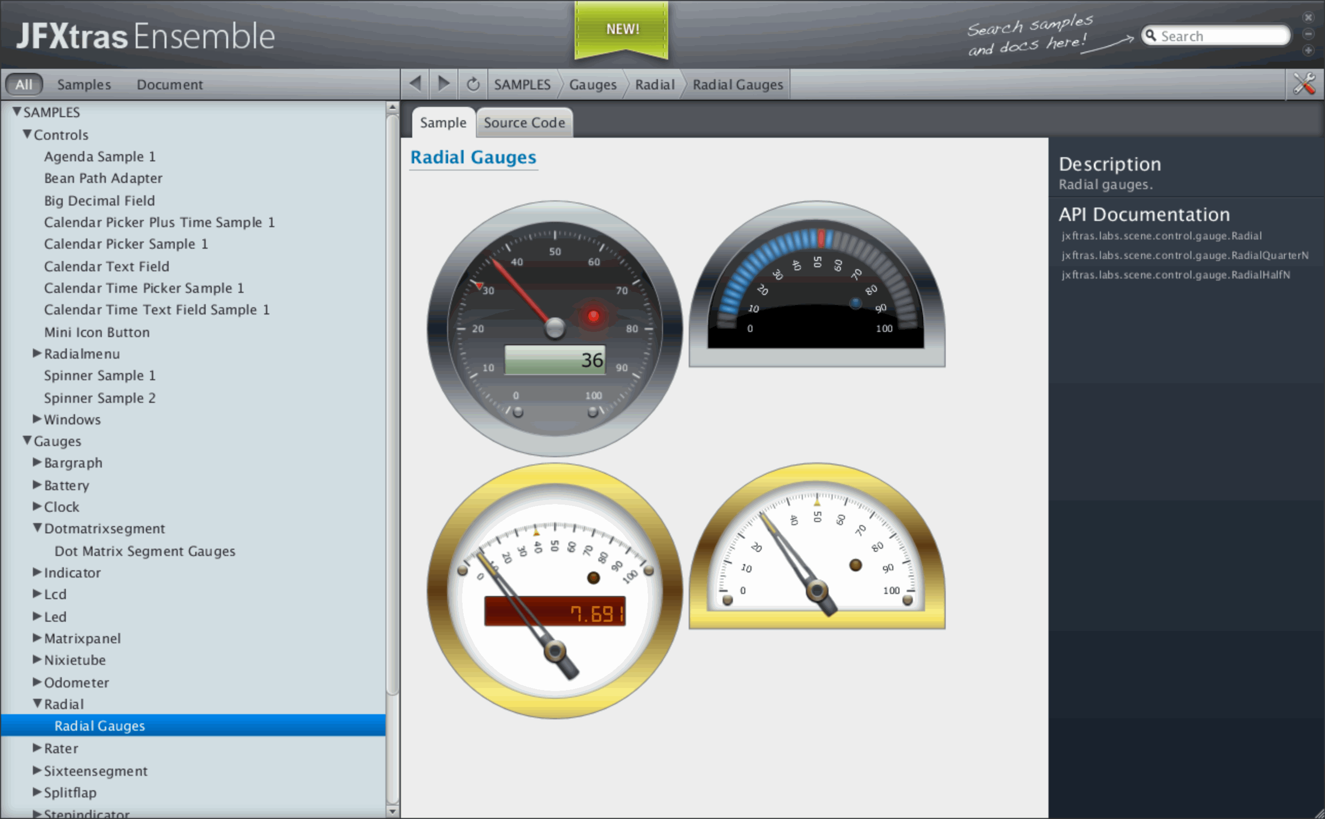 The following screenshot shows the demo application Ensemble of the JFXtras library. This demo application contains examples of all components which are part of the library.