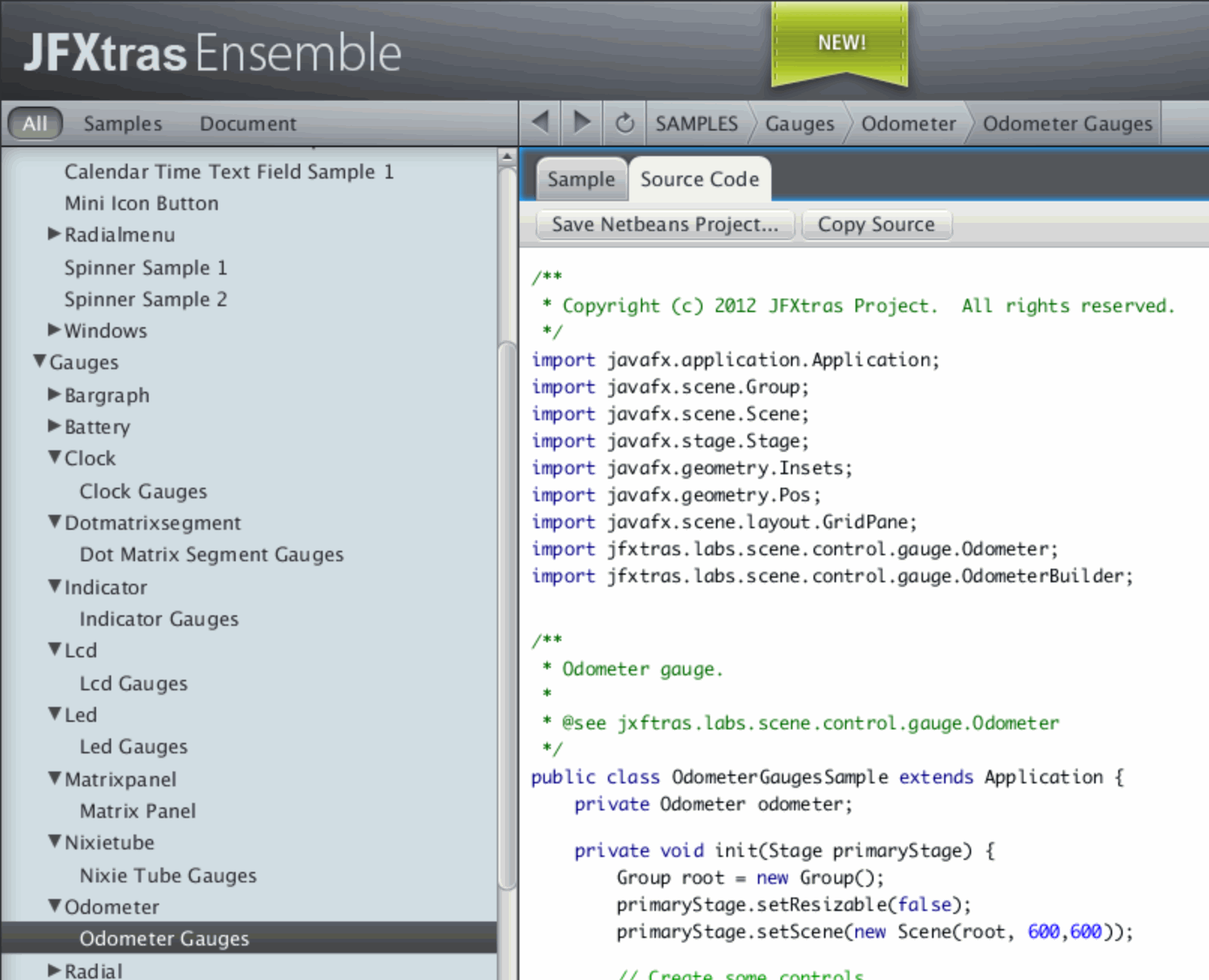 There you can copy the example source code of the component and paste it into a new class file with the name OdometerGaugesSample
