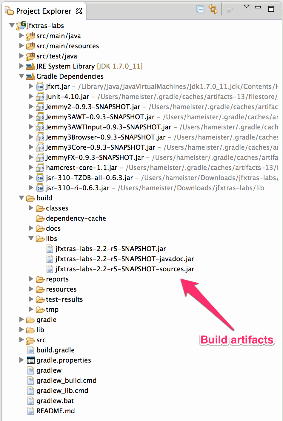 When the import has finished you have a Gradle project in your workspace. After the Gradle build is executed the build artifact (jfxtras-labs-[VERSION].jar