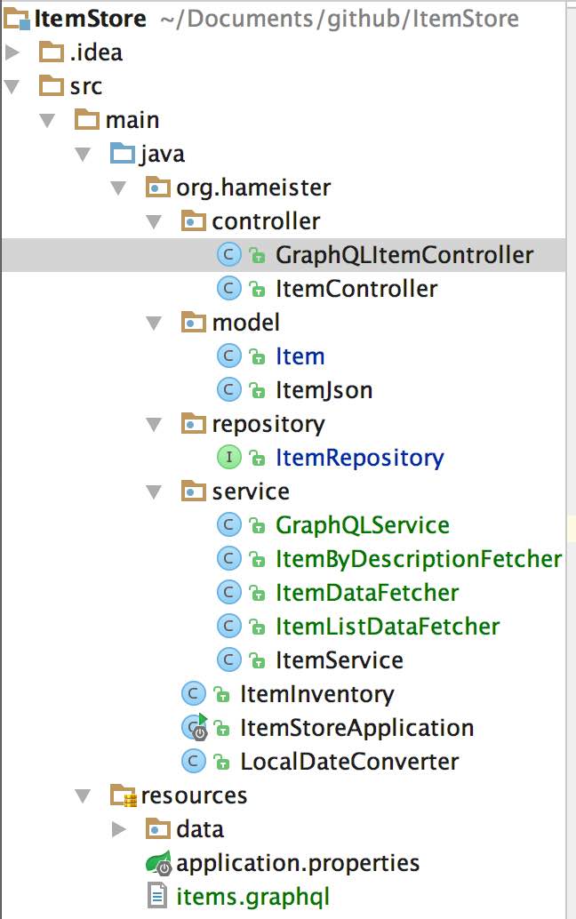 The complete source code can be found on Github at ItemStore in the branch graphQL.