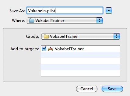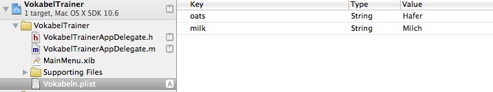 Bei der Beispielanwendung werden die Vokabeln in einer plist