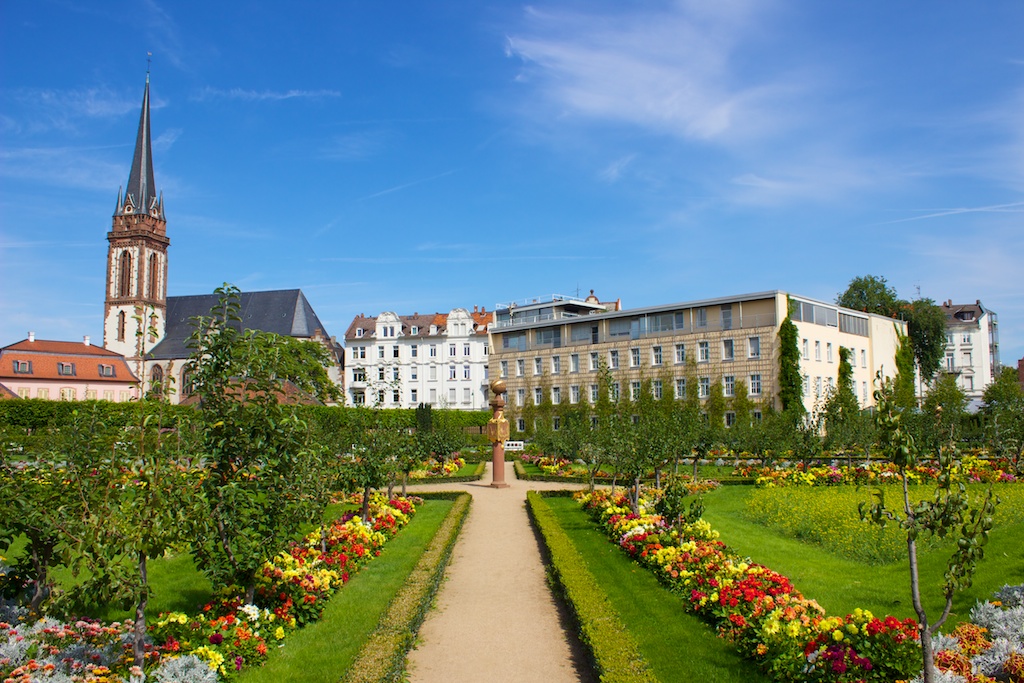 Blick auf die Sonnenuhr im Prinz-Georg-Garten in Darmstadt.