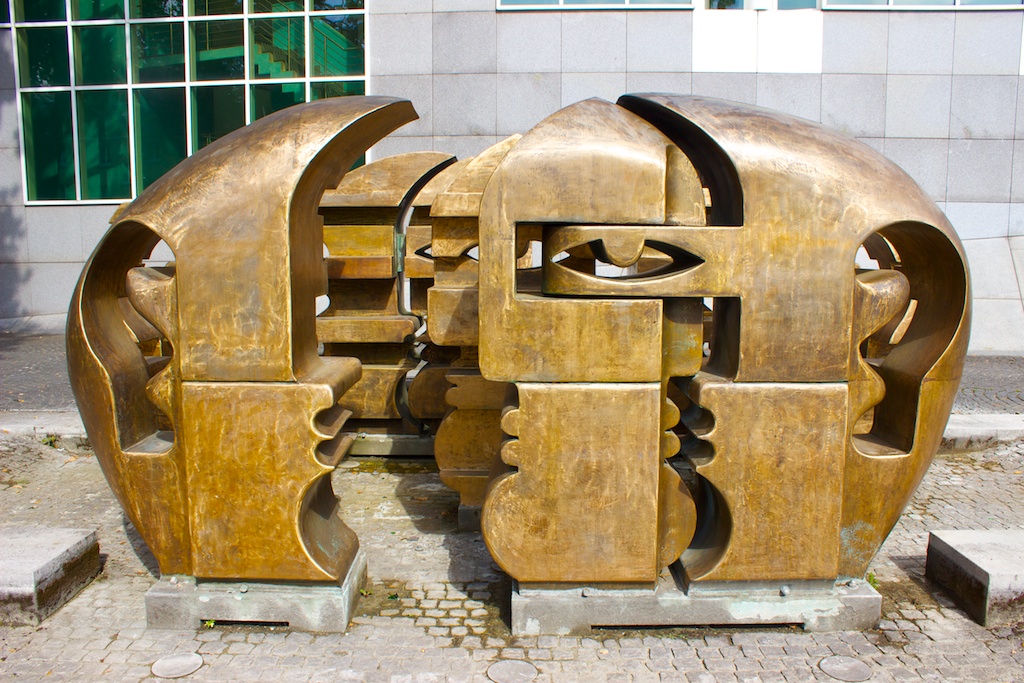 Eine Skulptur vor der ehemaligen Landeszentralbank in Darmstadt.