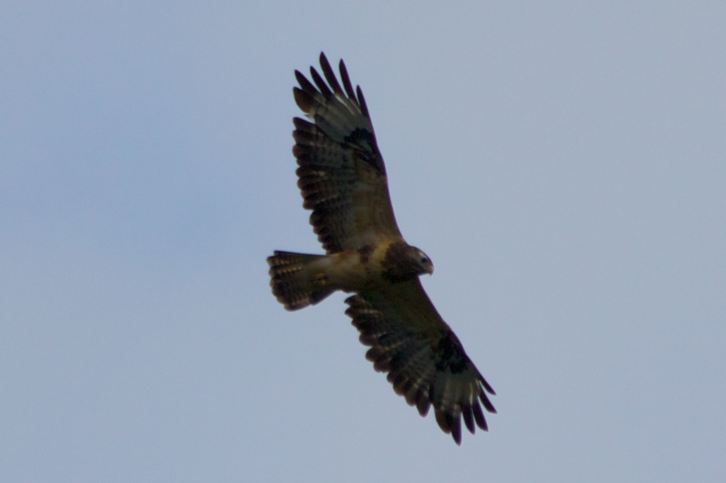 Ein Mäusebussard ist direkt über meiner Terrasse gekreist.
