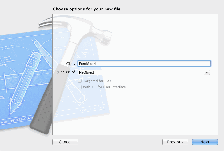 Als Namen für die Class wählt man FontModel und klickt auf Next.