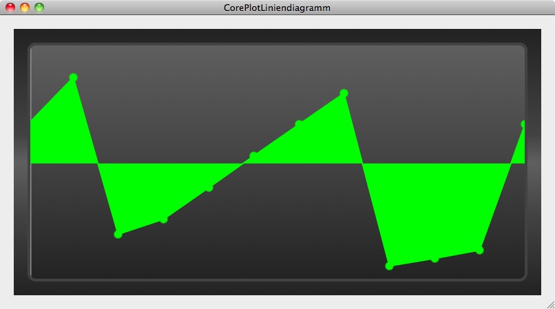 in das Tutorial: CorePlot Liniendiagramm eingebaut und kompiliert wird, dann ist nach dem Start des Programms folgendes zu sehen: